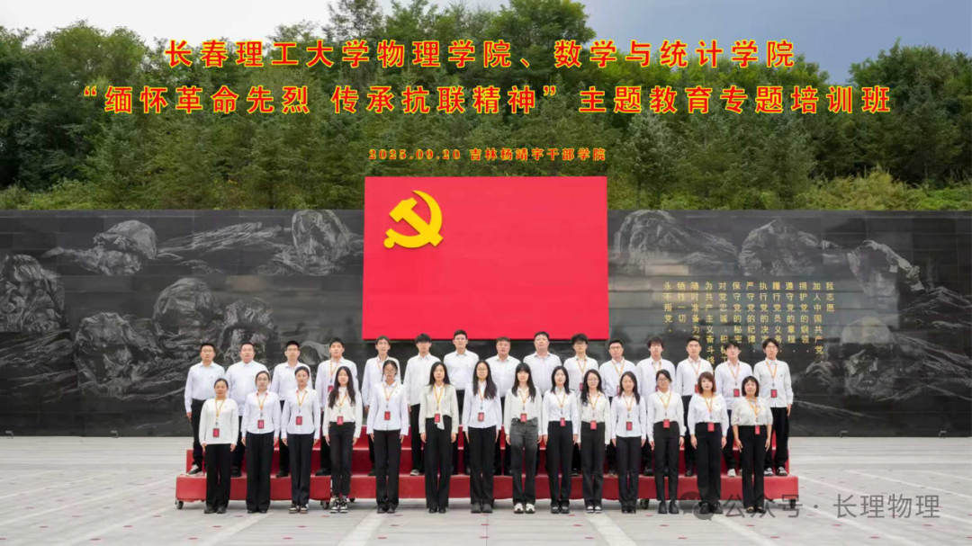 为深入学习贯彻新时代中国特色社会主义思想,传承红色基因、赓续红色血脉,9月19日至21日,物理学院党员干部赴吉林杨靖宇干部学院开展以“缅怀革命先烈 传承抗联精神”为主题的教育专题培训班。